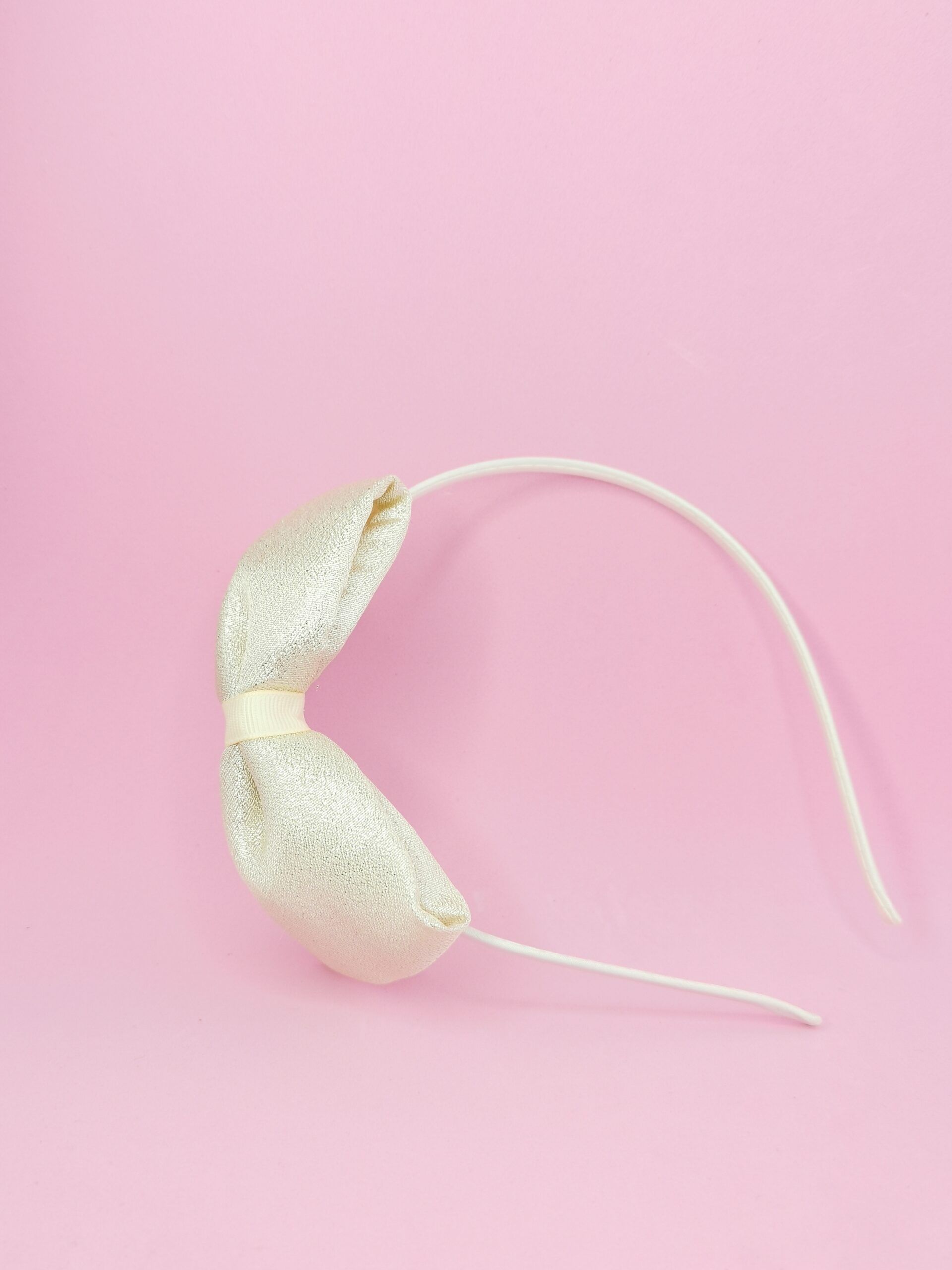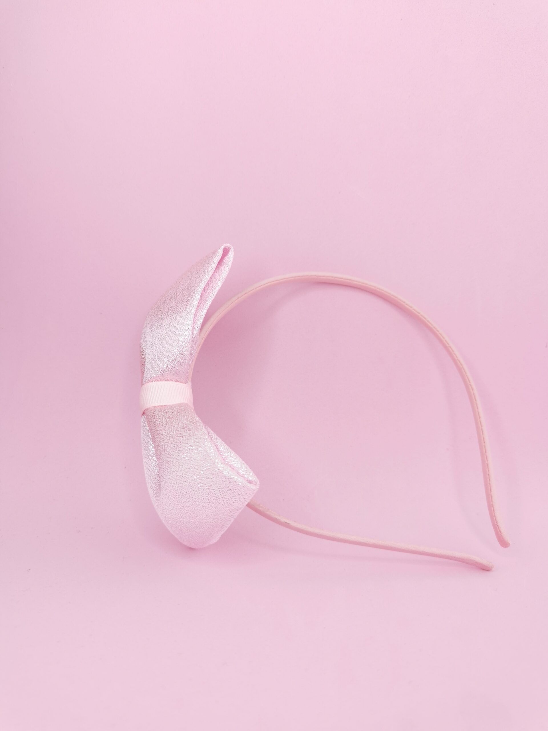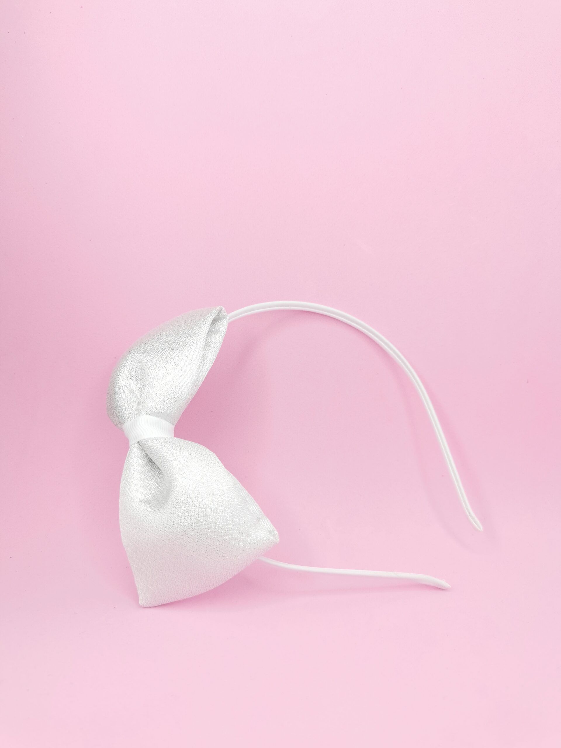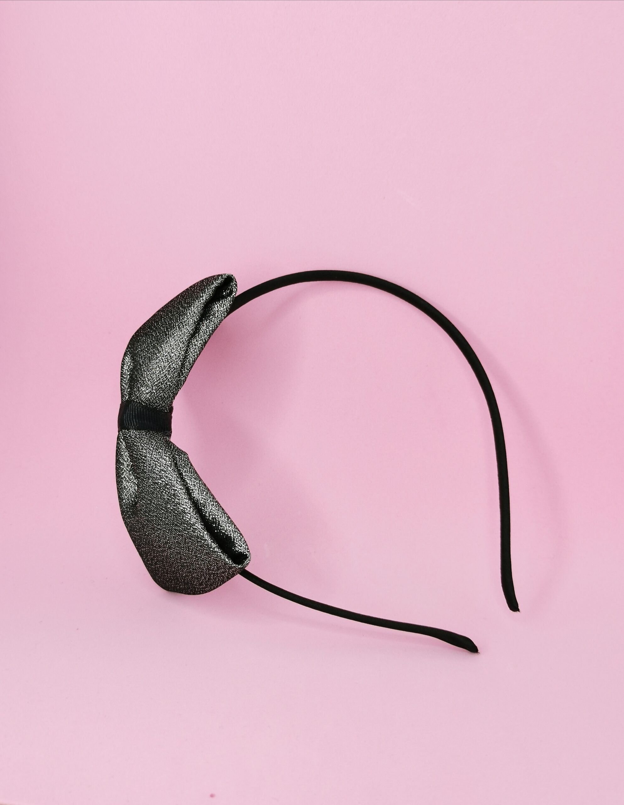 Hermosa diadema de moño brillante disponible en color negro, plata, gris, rosado y verde.