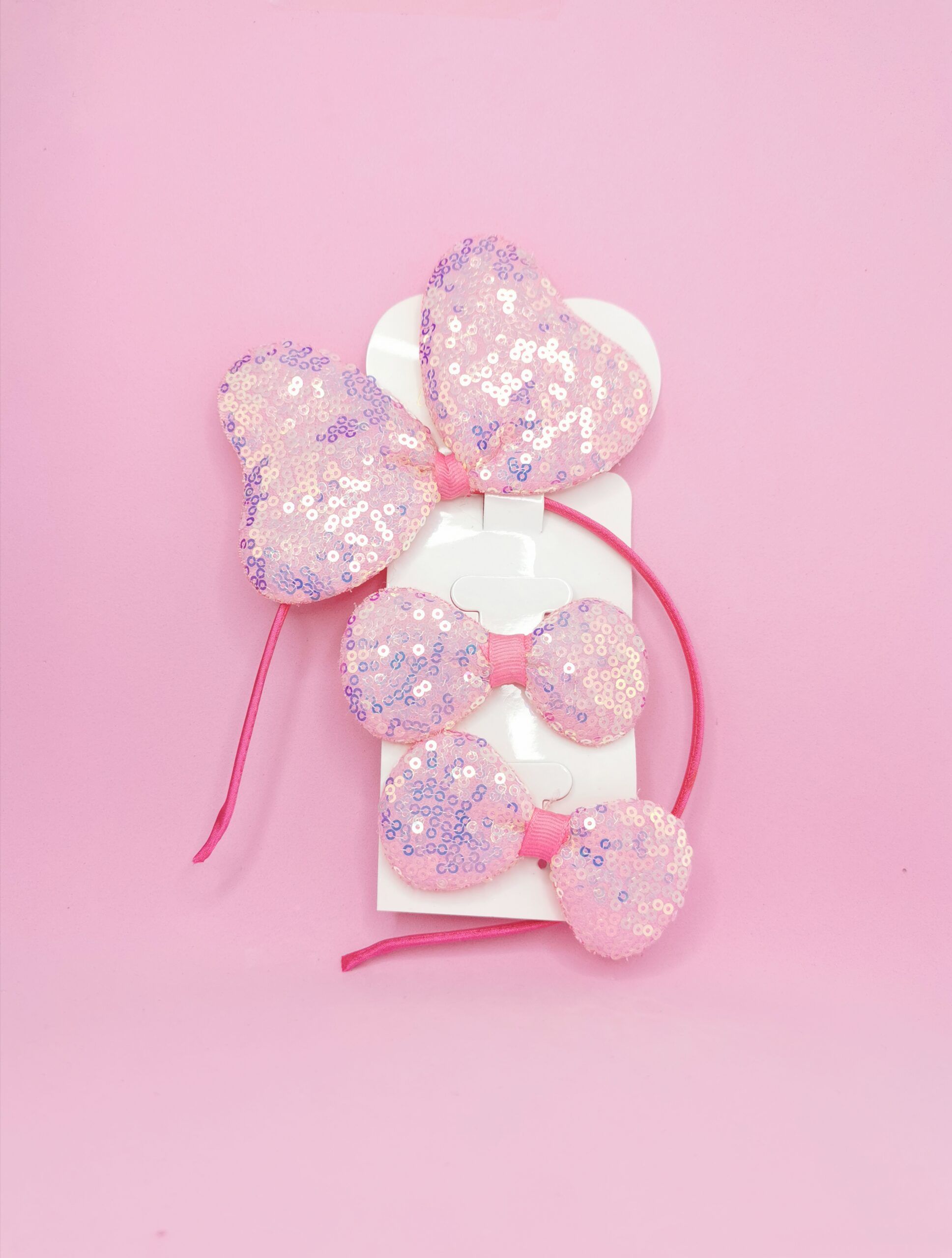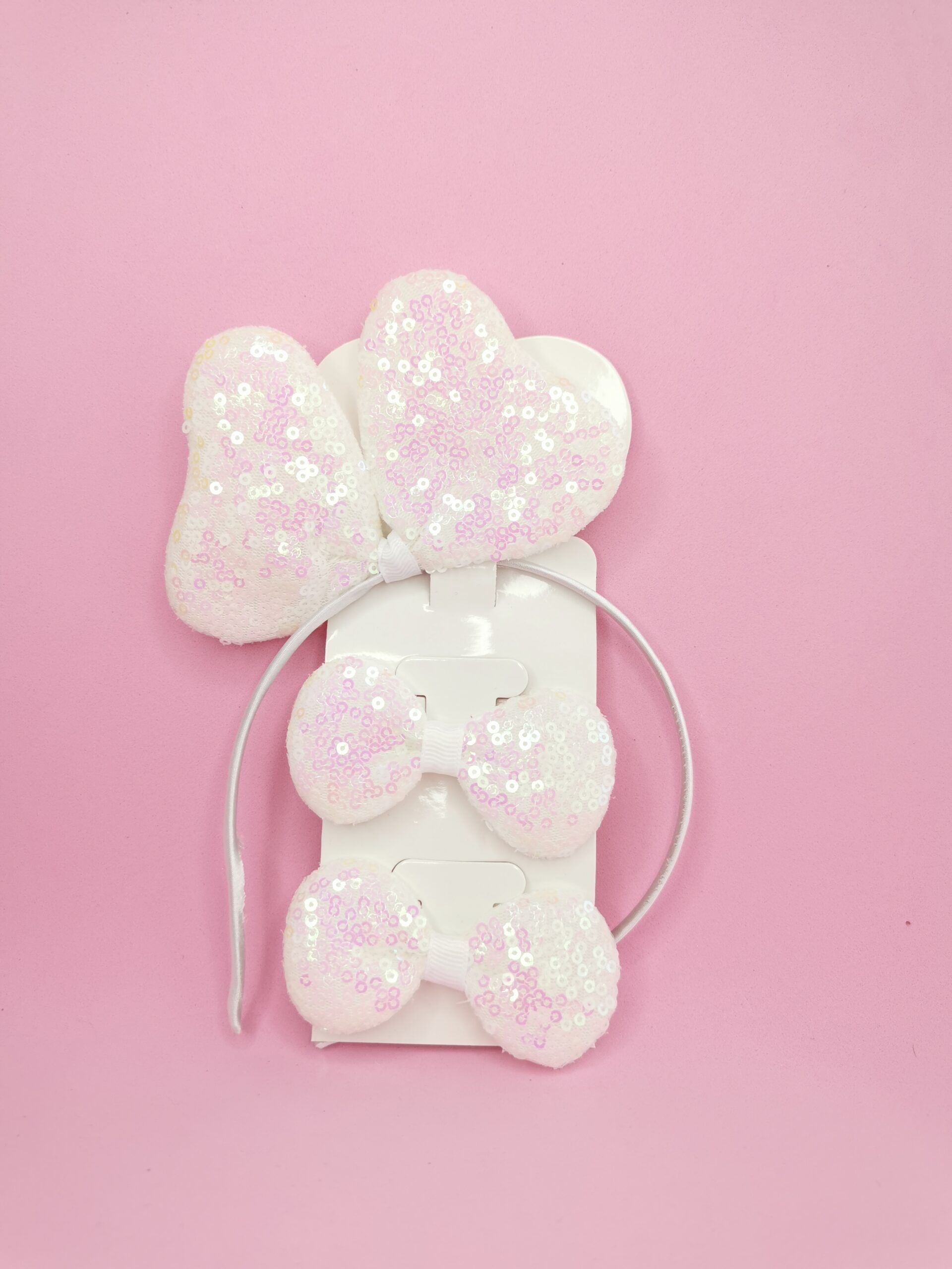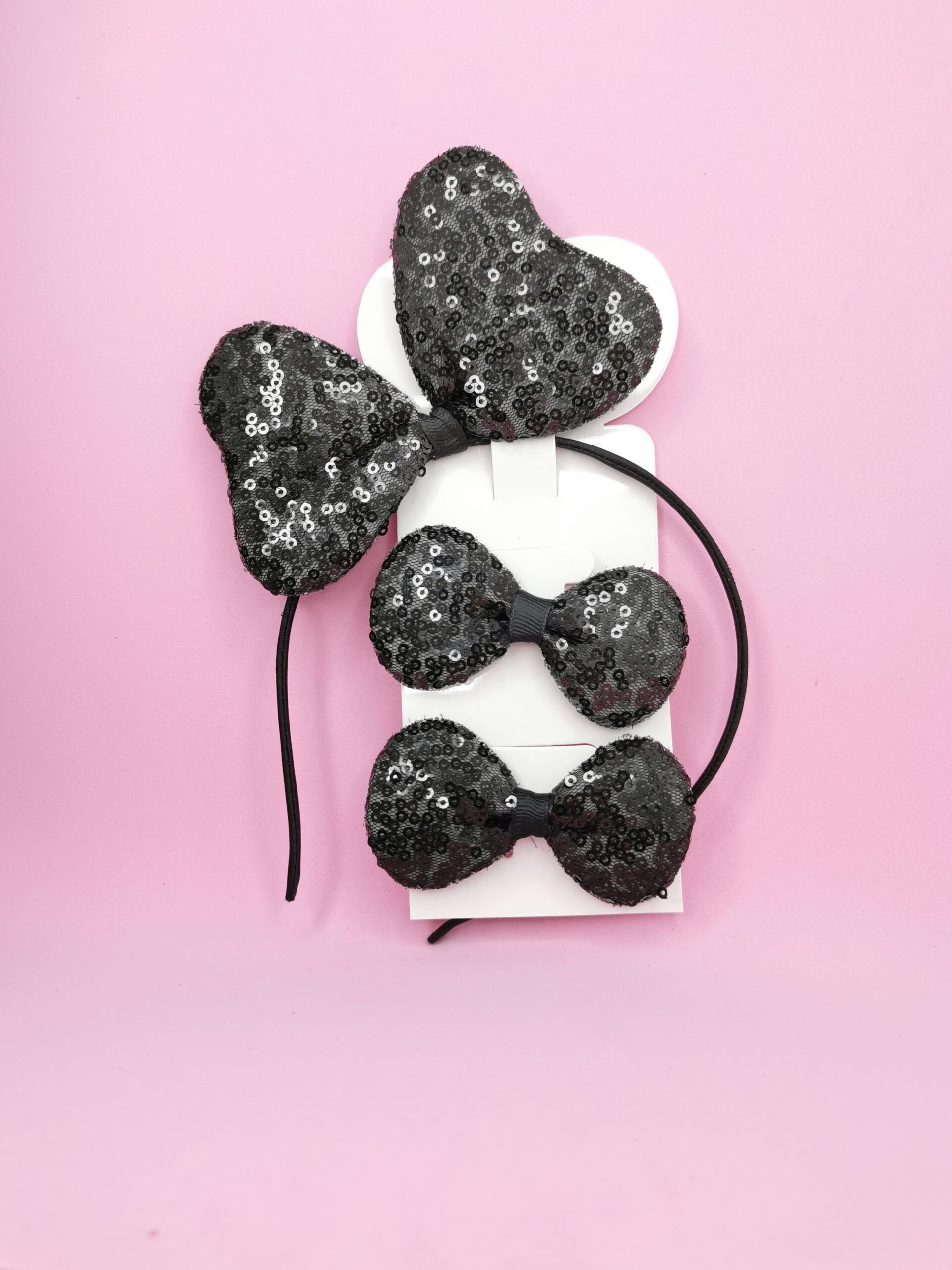 Set de diadema y moño disponible en 4 hermosos tonos: Negro, Fucsia, Rosado y Blanco.