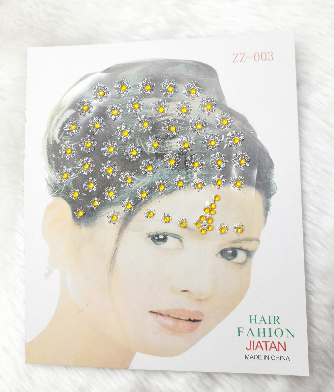 Hermoso sticker adhesivo chino para el cabello y el rostro disponible en siete colores diferentes: Lila, azul celeste, plateado, amarillo, rosado, fucsia y multicolor. Ya tienen su adhesivo, ideal para decorar tus peinados, tus trenzas, y la carita de nuestras princesas.